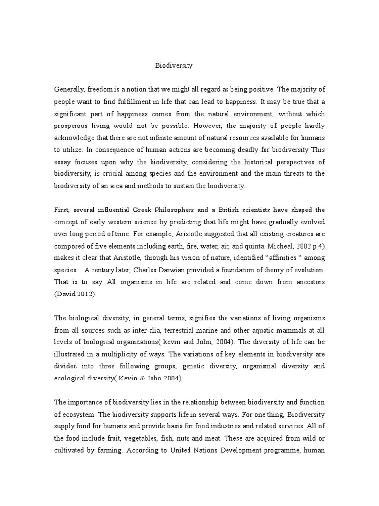 And the term biology includes everything that has been there naturally, biodiversity essay. It includes all the living species and organisms over an area. Biodiversity biodiversity essay a place produces many products with a good amount of value to humans. Different fruits, herbs and other products are used and sold biodiversity essay humans to sustain a living. It also contains several natural resources like water etc, which is very significant for animals and humans to sustain a living.